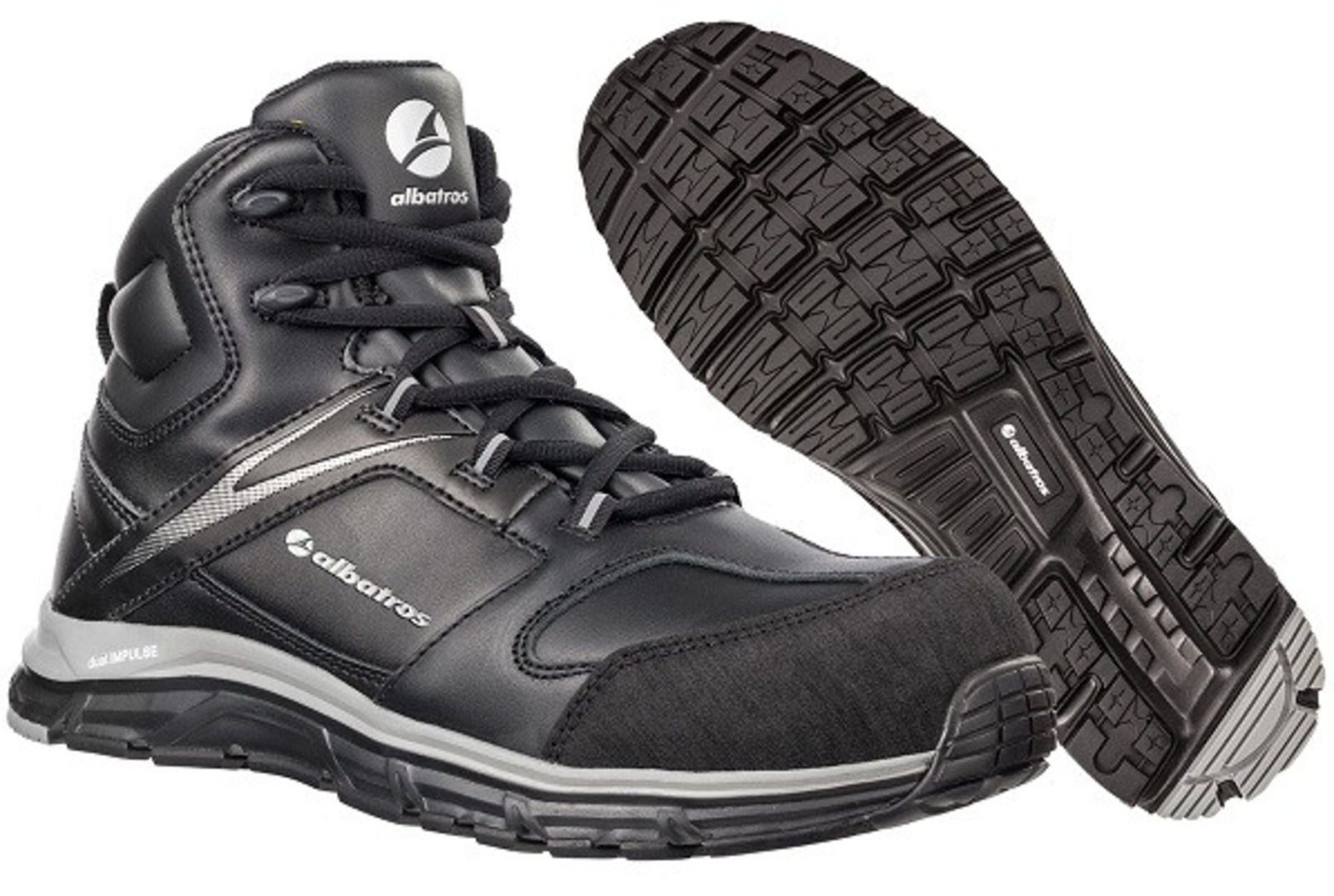 vrchný materiál - hladká vodeodolná koža, podšívka - priedušná, oceľová špica, kompozitná stielka - flexibilná stielka - FAP®, protišmyková podošva - guma/medzipodrážka IMPULSE.FOAM®